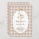 Fêtez l'arrivée prochaine de votre petit avec notre invitation de baby shower, conçue pour donner le ton parfait pour votre événement spécial. Doté d'un charmant cheval à bascule et d'un arc élégant contre un arrière - plan brun et brun en vichy, cette invitation inspirée du boho saisit l'essence d'un rassemblement chaleureux et accueillant. Son design élégant ne fait pas que transmettre la joie de l'occasion mais sert aussi de joli gardien pour les clients. Faites de votre baby shower un inoubliable avec cette invitation exquise qui reflète votre style unique et l'amour pour votre famille grandissante.