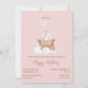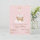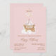 Sweet boho petite fille invitation baby shower fait en rose, avec des graphiques mignons d'un lit bébé à l'aspect vieillot. Le texte en marron est entièrement personnalisable et prêt à être personnalisé pour votre événement baby shower. Adorable invitation à la mère d'être chéri.