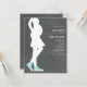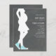 Une invitation baby shower illustrant la silhouette d'une mère qui doit être avec un bébé bosse et des baskets de haut niveau bleus. Arrière - plan s'inspire de chalkboard. Customisez le texte avec les détails de votre occasion.