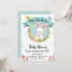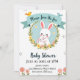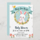 Belle invitation au baby shower lapin dans les tons bleu et jaune.