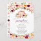 Ajoutez une touche d'élégance à votre fête d'automne avec cette magnifique Invitation de Baby shower Citrouille de la Petite Bourgogne. Idéal pour une petite fille, ce design présente un citrouille de pêche doux au centre, magnifiquement entouré de fleurs de couleur bordeaux, rose rousse et orange chaude aux feuilles d'automne. Des arrangements floraux coordonnés ornent également le haut et le bas de l'invitation. Que vous planifiez un rassemblement d'automne confortable ou une douche sophistiquée sur le thème floral, cet invitation saisit la chaleur et la beauté de la saison. BBS474