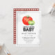 Le marché rustique des fermiers s'est inspiré du thème de baby shower neutre de genre avec une tomate rouge et verte sur un arrière - plan blanc avec du texte noir. Le côté opposé est rouge et blanc en vichy.
