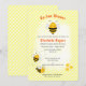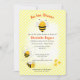 Jeu amusant sur les mots "Ba-bee shower" avec de mignonnes illustrations de dessin animé d'abeilles bébé et mère, co mignon avec une coordination jaune en vichy et cellules nid d'abeilles
