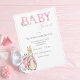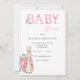 Jolie petite aquarelle rose "BABY" typographie avec lapin lapin lapin Beatrix Potter ajouté dans l'invitation de baby shower de police. Si mignon pour ce baby shower de petite fille. 100% de satisfaction client avec "Zazzle"