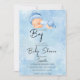 Envoyez à vos invités ces invitations modernes mais élégantes de douche bébé bleu aquarelle. Petit garçon sur un arrière - plan bleu aquarelle. GARÇON ! Cartes modifiables - personnalisez-les en ajoutant votre texte. Parfait pour tous les thèmes de la fête de la douche pour bébé garçon.