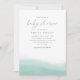 Une élégante invitation au baby shower côtier présente un dégradé d'eau vert de verre de mer sur le fond avec une courbe gracieuse qui évoque le reflet et le flux de la mer. Les détails de votre baby shower apparaissent en lettrage classique minimaliste avec accents manuscrits.