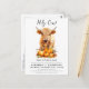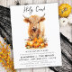 Bienvenue à l'invitation parfaite de la douche bébé pour une fête sur le thème des chutes ! Notre invitation "Holy Cow, We're Have a Baby!" présente un mignon veau de vache de montagne entouré de feuillage citrouille et d'automne. Les couleurs chaudes et le design ludique en font le choix idéal pour votre ferme ou baby shower à thème Halloween. Que vous attendiez un garçon ou une fille, notre invitation "Holy Cow" ravira vos invités et donnera le ton pour un événement festif et amusant. Alors pourquoi attendre ? Commandez dès aujourd'hui vos invitations de douches pour bébés sur le thème animal de la ferme et préparez-vous à célébrer l'arrivée de votre petit dans le style! DROIT D'AUTEUR © 2023 Judy Burrows, Black Dog Art - Tous droits réservés. Cute Highland Cow Automne Baby shower Invitation Carte postale