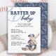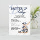 baby shower de baseball "Batter up baby" pour aider les amateurs de baseball à accueillir leur nouveau petit lanceur dans la famille. Cette mignonne carte comporte un petit joueur de baseball avec son casquette et sa batte de baseball.