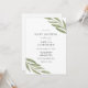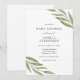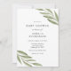Invitation baby shower avec des branches de verdure aquarelle qui balaient les coins du design. Personnalisez avec vos informations ou cliquez sur "Cliquez pour customiser plus loin" pour modifier les styles, la taille et les couleurs des polices.