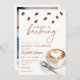Cette élégante invitation au baby shower comprend des fèves de café et une tasse de café et peut être personnalisée avec vos détails mis en typographie élégante. Le verso comprend votre photo spéciale et un code QR de registre. Conçu par Thisisnotme©