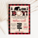 Bienvenue à votre petit avec notre Plaid Lumberjack Baby shower Invitation imprimable. Personnalisez pour partager la joie avec vos proches ! BS858