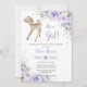 Personnalisez facilement et rapidement cette invitation de Baby shower de bois fantaisie. Cliquez simplement sur le bouton customiser pour modifier les textes, modifier les polices et les couleurs des polices. Doté d'adorables cerfs de bébés et de belles fleurs violettes pastel lavande. Objets correspondants disponibles en magasin. c) Somerset Fine Paperie