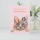 Dessin de chat mignon avec une invitation à baby shower de fleurs. Facile à customiser.