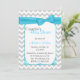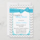 L'élégante invitation au baby shower d'un couple se fait dans un motif zigzag en chevron gris clair et blanc. Les graphiques d'une zone de texte blanc aux bords turquoise, au centre, ont un joli ruban et un arc turquoise, au sommet. L'arrière se fait dans le même motif de chevron, avec une autre zone de texte blanc en bas. Personnalisez tout le texte, avant et arrière pour répondre à vos besoins.