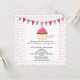Cette précieuse invitation baby shower est une merveilleuse façon d'invitation vos invités à se joindre à vous pour célébrer votre nouvelle arrivée. Ce design présente un arrière - plan blanc vif avec des pois roses. De l'autre côté du haut, une bannière de style rose et blanc vêtue de fenouil. Au centre, un gâteau amusant avec givrage rose vif et un joli bonbon de menthe rose. Au premier plan, un doux dicton dit, "Amour, Joie, et rêves merveilleux toutes les choses douces qu'un nouveau bébé apporte..." En dessous, il y a un endroit pour tous les détails de votre douche.