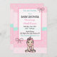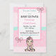Petite fille attirée à la main, rose et turquoise, pois et arcs invitation à la douche bébé.