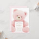 Invitation Baby shower de fille d'ours