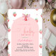 Une mignonne invitation au baby shower comporte une fraise aquarelle et un arc. Ces invitations de douches pour bébés sont facilement customisées pour votre événement en ajoutant simplement vos détails.