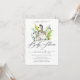 Zebra moderne et mignon et ses invitations Baby Jungle Shower. Neutre pour un garçon ou une fille. De gris clair, noir un blanc avec des ppops de feuillage vert avec un motif zèbre légèrement passé en arrière.