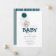 Invitation Baby shower balloon lapin bébé flottant à balloon personnalisée pour un petit être aimé. Créez et Customisez rapidement votre Baby shower Invitation bleue et blanche. Cliquez sur le bouton "Customisez-le !" pour modifier la taille du texte, la couleur du texte, le style de police et plus encore !