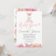 Un mignon lapin d'aquarelle avec des fleurs dans ses cheveux est assis avec une bannière rose qui dit "C'est une fille." Le texte est écrit dans une combinaison de script manuscrit populaire et de typographie facile à lire que vous pouvez customiser pour changer la police et la couleur ou garder comme il est pour votre commodité. Des fleurs d'aquarelle bordent le fond de cette jolie invitation au baby shower de petite fille. Un joli bouquet floral aquarelle est imprimé sur le dos.