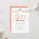 Cette belle invitation au baby shower présente de jolies illustrations de bruants et d'oiseaux. Des articles de fête correspondants sont également disponibles ainsi qu'une version garçon en bleu. © Mini Moi Prints