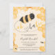Un joli et adorable aquarelle peinte à la main bee bee aquarelle avec ailes en forme de coeur baby shower avec abeilles orange, jaune et marron, nid d'abeille, calligraphie de script moderne. Que sera-t-il ? !