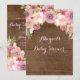 Invitations de douches pour bébés personnalisées avec motif rustique en bois de campagne et jolies aquarelles de fleurs vintages roses. Parfait pour un baby shower de printemps ou d'été.