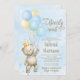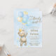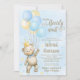 Un garçon est invité baby shower avec un ours bébé mignon et des ballons sur un joli arrière - plan bleu. Cette invitation à porter baby shower est facilement personnalisée avec les détails de votre événement.