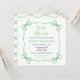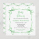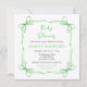 Cette invitation au baby shower mignonne et fantaisiste comporte un cadre vert joli ruban. Le texte combine écriture manuscrite et polices sans serif pour un look élégant et moderne.