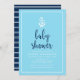 L'élégante invitation de Baby shower nautique avec une ancre et les mots "baby shower" dans un script bleu marine élégant contre un arrière - plan bleu avec une bordure blanche est parfaite pour un baby shower garçon. La carte a un motif à rayures blanches contre un arrière - plan bleu à l'arrière. Consultez d'autres éléments de baby shower ici https://www.zazzle.com/rosewoodandcitrus/gifts?cg=196748758771183969&rf=238364477188679314 Personnalisez-le en remplaçant le texte de l'espace réservé. Pour plus d'options comme changer la police et sa taille/couleur ou l'espacement entre les lettres cliquez sur le bouton "Personnaliser". *Veuillez noter que le filigrane Zazzle qui apparaît dans l'aperçu du zoom n'apparaîtra PAS sur le produit imprimé final © Rosewood et Citrus