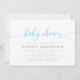 Baby shower élégant Invitation avec les mots "Baby shower" dans un script de relaxation cursive en bleu clair contre un arrière - plan blanc. La carte est recouverte d'un côté bleu clair avec des lignes superposées. Personnalisez-le en remplaçant le texte de l'espace réservé. Pour plus d'options comme changer la police et sa taille/couleur ou l'espacement entre les lettres cliquez sur le bouton "Personnaliser". *Veuillez noter que le filigrane Zazzle qui apparaît dans l'aperçu du zoom n'apparaîtra PAS sur le produit imprimé final. © Bois de rose et agrumes