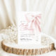 Invitation Baby shower Pink Bow Script. Cette élégante invitation comporte un arc rose vif charmant et un script manuscrit romantique, parfait pour une douche de bébé lunatique. Le ruban chic et le design preppy ajoutent une touche de sophistication, tandis que le modèle modifiable permet une personnalisation facile. Créez une invitation magnifique et mémorable pour votre événement spécial.