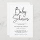 Invitation Baby shower Script Simple. Cette invitation au baby shower de script minimaliste à la main moderne est parfaite pour les couples qui veulent faire une déclaration de style contemporain. L'élégante calligraphie associée à la palette de couleurs noir et blanc créera une invitation intemporelle que vos invités n'oublieront pas. Faites une déclaration audacieuse avec ce design unique et élégant!
