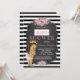 Fleurs roses à rayures noires adorables et invitations sucrées de bébé afro-américaine en tableau noir pour bébé douche. Cette belle invitation vintage de baby shower en damier est facilement customisée pour votre événement en ajoutant vos détails dans le style et la couleur de police, et le libellé de votre choix.