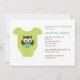 Les invitations élégantes et sucrées à la douche pour bébé présentent une adorable illustration vectorielle d'un rameper pour bébé ou d'un t-shirt avec une chouette bébé. Garçons, filles ou version neutre de ces mêmes invitations sont disponibles dans notre magasin. Couleurs personnalisées disponibles sur demande. Visitez notre magasin pour des produits assortis tels que des notes de remerciement, faveur des étiquettes, étiquettes de adresse, enveloppes, décorations et plus encore! Erin Bradley