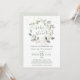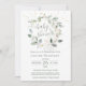 Cette conception présente des branchettes à effet aquarelle avec des feuilles verts. Au-dessus des feuilles, des confettis ornent le haut de la carte