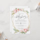 Faux géométrique Gold et Blush Rose Foliage vert Baby shower Invitation. Des aquarelles fantaisistes et une typographie moderne complètent le design. Personnalisez cette invitation de Baby shower avec vos détails de baby shower facilement et rapidement, appuyez sur le bouton customiser pour réorganiser davantage, et formater le style et le placement du texte.