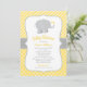 Invitation Baby shower d'éléphant jaune et gris moderne
