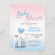 Invitation Baby shower d'éléphant neutre rose ou bleu