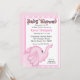 Invitation Baby shower Eléphant Rose. Customisez avec les détails de votre fête. Image adorable d'éléphant rose.