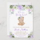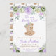 Invitation Baby shower des fleurs vert et violet de l'ours