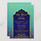 Bollywood ou les nuits arabes thème baby shower soirée carte d'invitation en aqua et bleu ombre avec l'or en feuille et or parties scintillant accents effet.