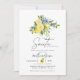 Citron bleu Citrus Fruit Baby shower d'été Invitation! Doté d'un mélange éclatant de citrons bruns, d'accents bleus doux et de fleurs d'agrumes ludiques, ce design est parfait pour un baby shower d'été rafraîchissant