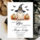 Célébrez votre petit citrouille sur le chemin avec cette adorable invitation de Baby shower d'Halloween. Doté d'un fantôme souriant dans un casquette sorcier, de citrouilles jack-o’lanterne et de chauves-souris ludiques, ce design charmant est parfait pour les baby showers sur le thème de l'automne ou de l'Halloween. Personnalisez avec vos détails et créez une invitation festive et familiale que vos invités aimeront.