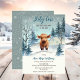 Jolie scène hivernale de vache haute-terre "La vache sainte, nous avons un bébé !" Baby shower.