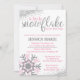 Notre invitation au baby shower d'hiver est parfaite pour tous les thèmes de la douche aux flocons de neige rose et argent.