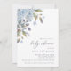 Invitation Baby shower d'hydrangées et de calligraphie bleues