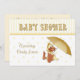 Invitation Baby shower en jaune avec mignon parapluie de retenue de canard et coeur jaune doux et arrière - plan rayé.