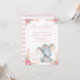 Petite fille éléphant invitation douche bébé avec adorable éléphant aquarelle avec de jolies fleurs roses sur la tête sur un joli arrière - plan rose floral. Ces invitations mignonnes à la douche bébé pour éléphant sont facilement customisées pour votre événement en ajoutant simplement vos détails.